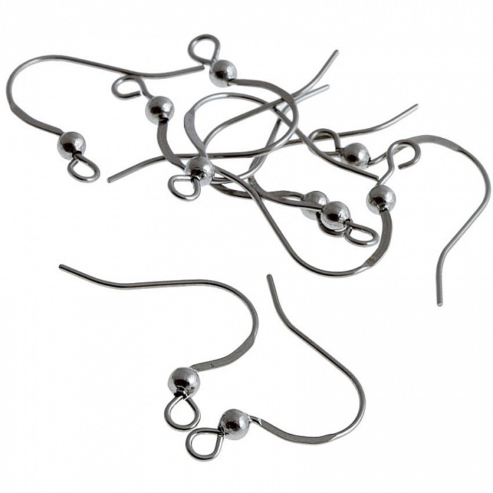 Náušnicový háček z chirurgické oceli 316L, s kuličkou a tepanou ploškou.