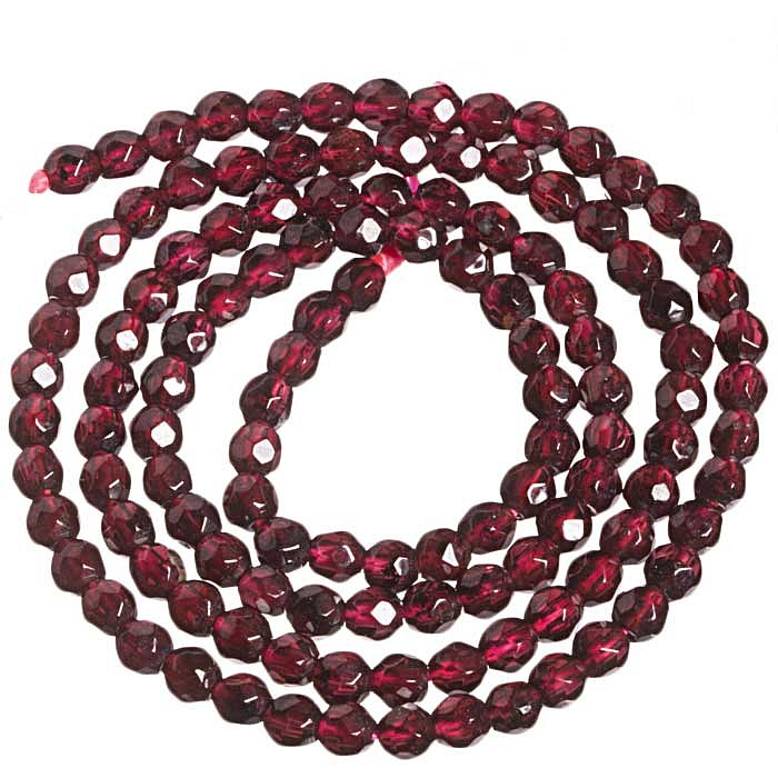 Korálky fazetovaného granátu. Korálky se ve velikosti mírně liší.