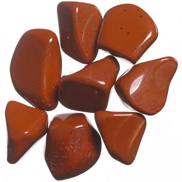 Tromlované kamínky červeného jaspisu na výrobu kamenné bižuterie.