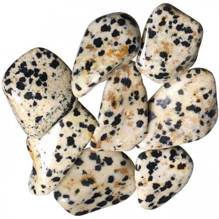 Tromlované kamínky dalmatinu (rohovce) na kreativní tvorbu kamenné bižuterie.