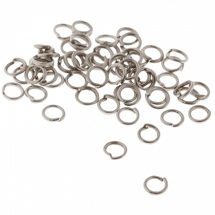 Spojovací kroužky platinové barvy o průměru 6 mm a síle drátku 0,9 mm.