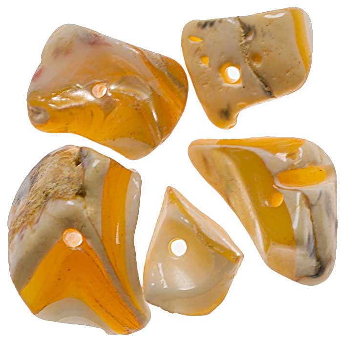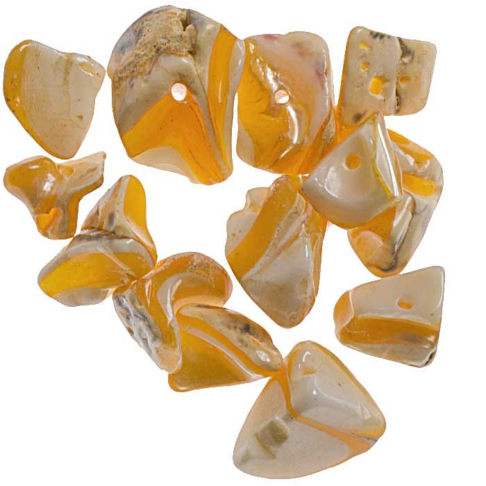 Větší zlomky přírodní barvené perleti ze sladkovodních mušlí.