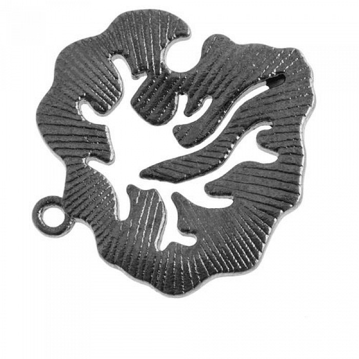 Kovové jednostranné přívěsky černé barvy ve tvaru listu. Na špičce ze spodní strany listu je druhé očko.