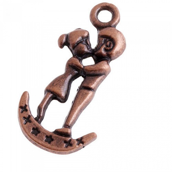Kovové jednostranné přívěsky měděné barvy ve tvaru dvou lidí v objetí.