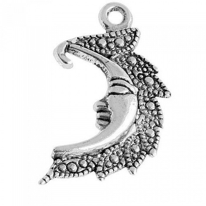 Kovové jednostranné přívěsky platinové barvy ve tvaru půlměsíce.