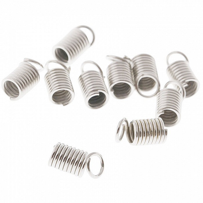 Zamačkávací pružinková koncovka na kůži, stříbrné barvy. Do této koncovky se vejde kožený kord o průměru 3 mm.