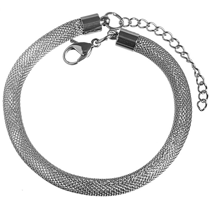 Dutý řetízek, náramek ve stylu hadí kůže z nerezové oceli 304, dlouhý 22 cm s prodlužujícím řetízkem 5 cm a ukončený karabinkou.
