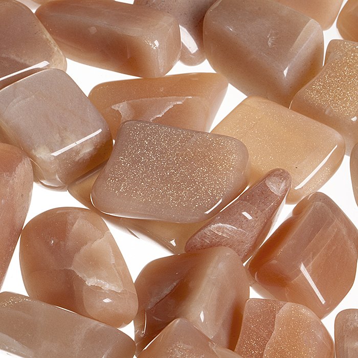 Tromlované kamínky slunečního kamene na výrobu kamenné bižuterie. Nepravidelné kváříky výborně vyleštěné.