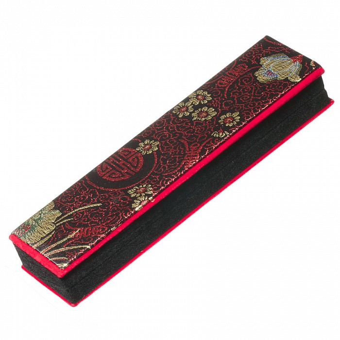 Pevná dárková sametová krabička s pantem. Víčko zdobené výšivkou.