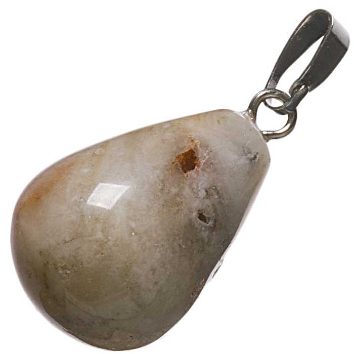 Přívěsek z krajkového achátu s kovovým očkem pro snadné zavěšení na řemínek, šňůrku nebo řetízek.